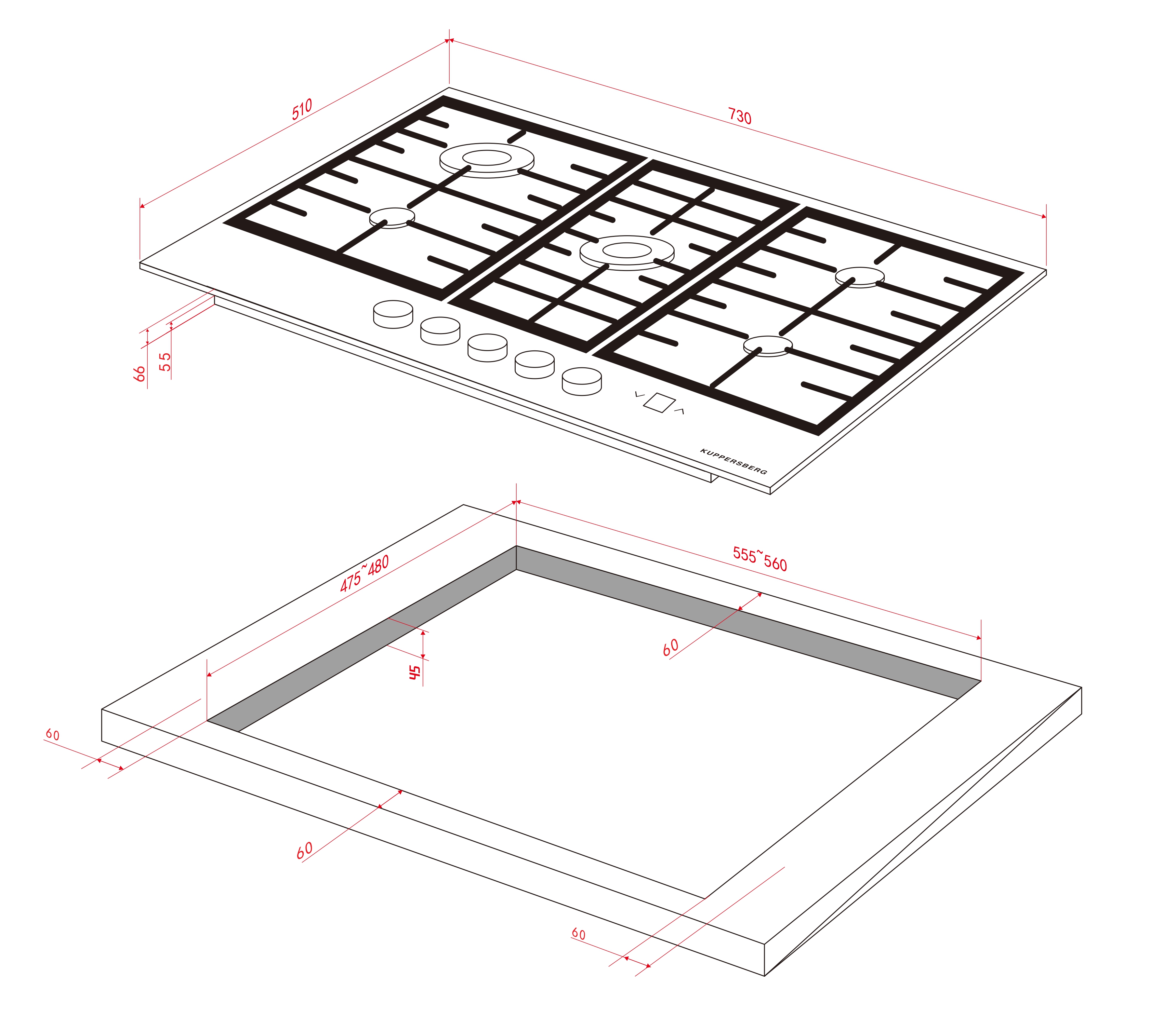 - Размеры ниши для встраивания (ШхГ) 555х475