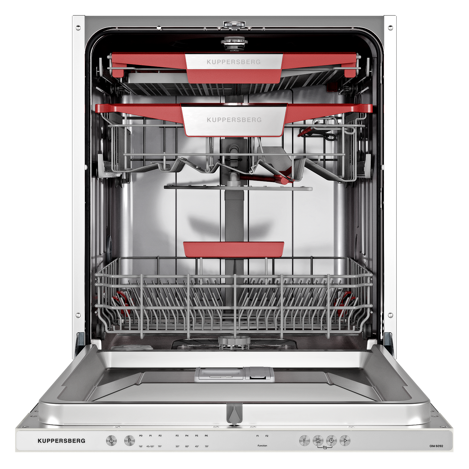 Тройная система корзин обеспечивает оптимальную организацию посуды для эффективной мойки.