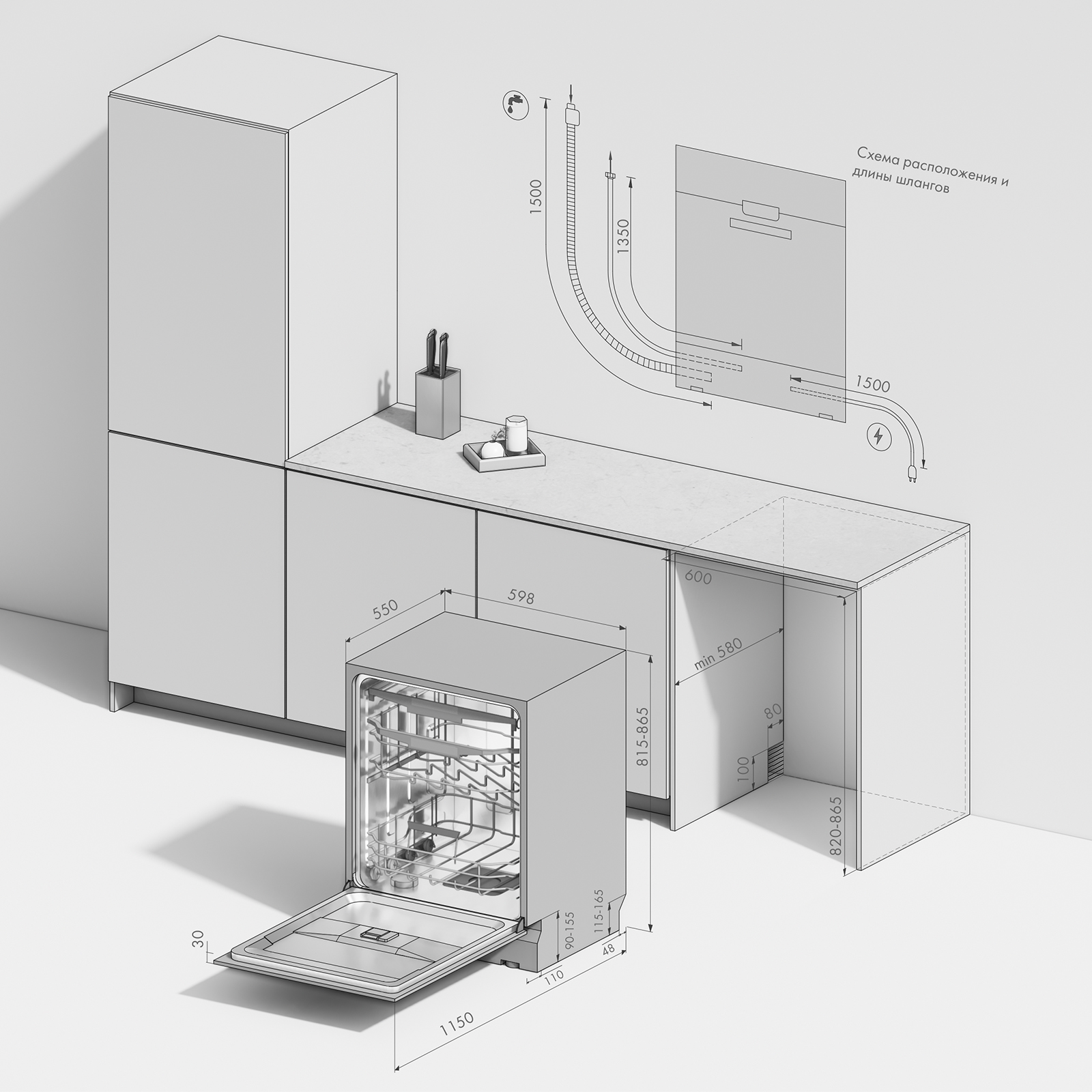 - Размер ниши для встраивания (ВхШхГ), мм 820х600х580