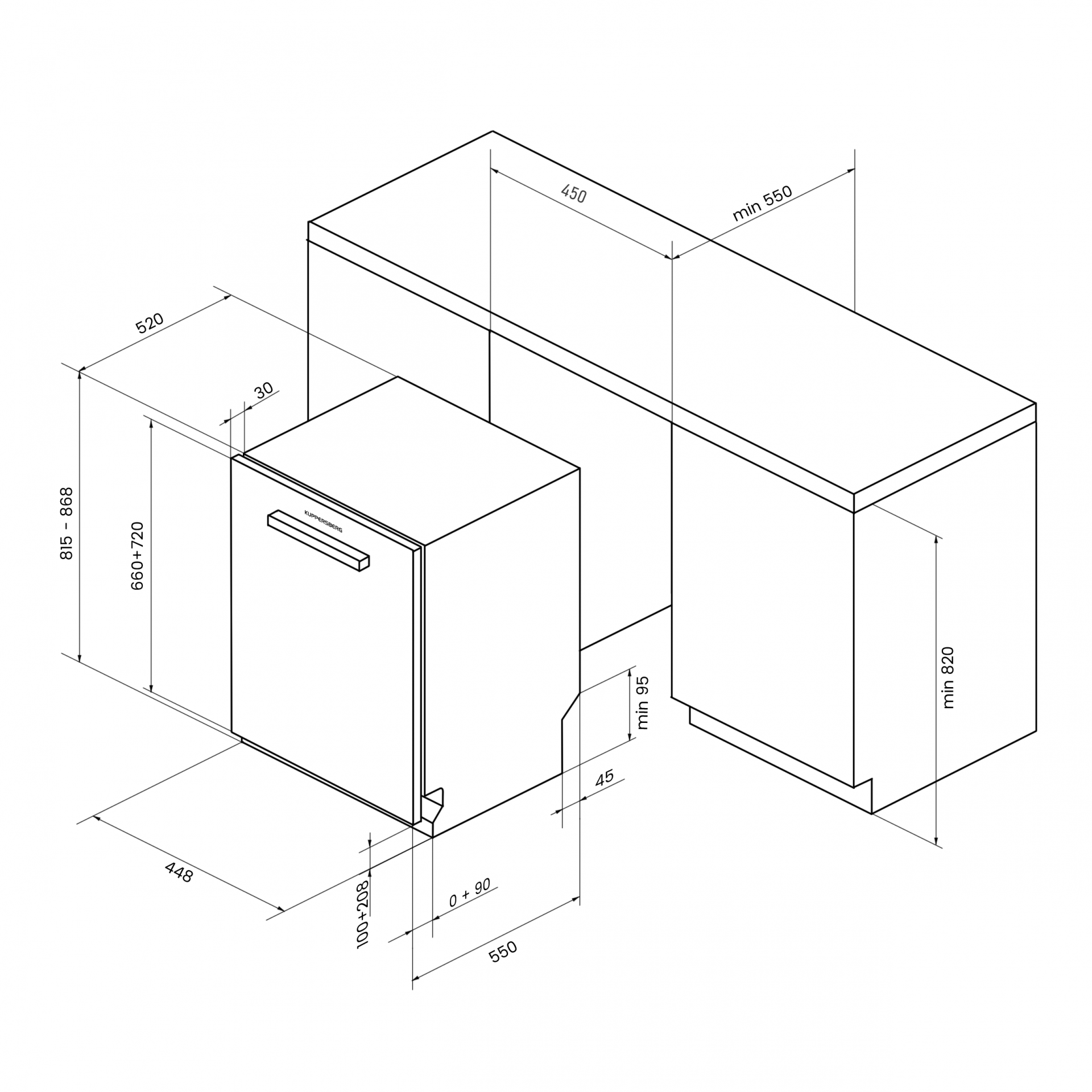 - Размер ниши для встраивания (ВхШхГ), мм 820х450х558