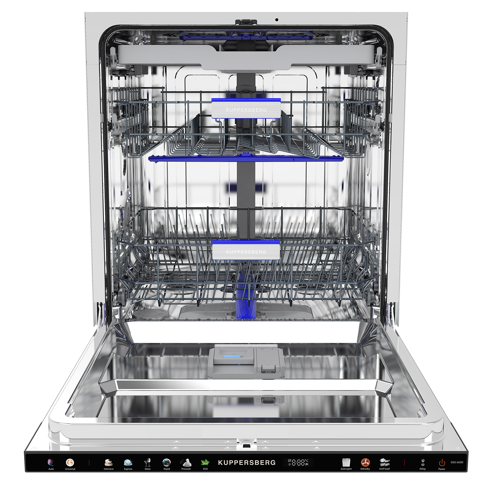 Тройная система корзин обеспечивает оптимальную организацию посуды для эффективной мойки.