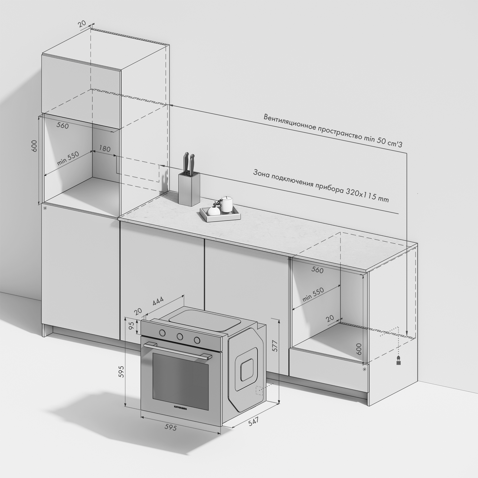 - Размер ниши для встраивания (ВхШхГ), мм 600х560х550