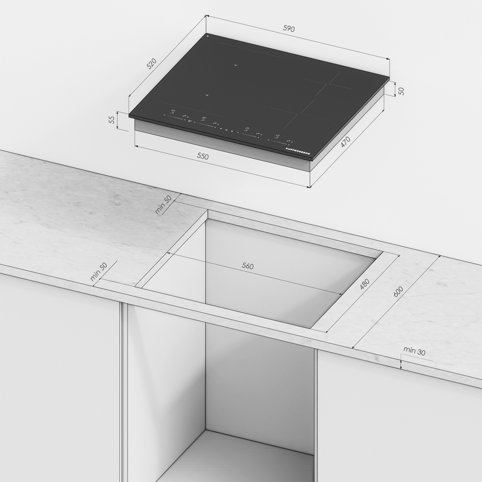 Элегантный дизайн без рамки, обеспечивающий стильный внешний вид и удобство встраивания в столешницу