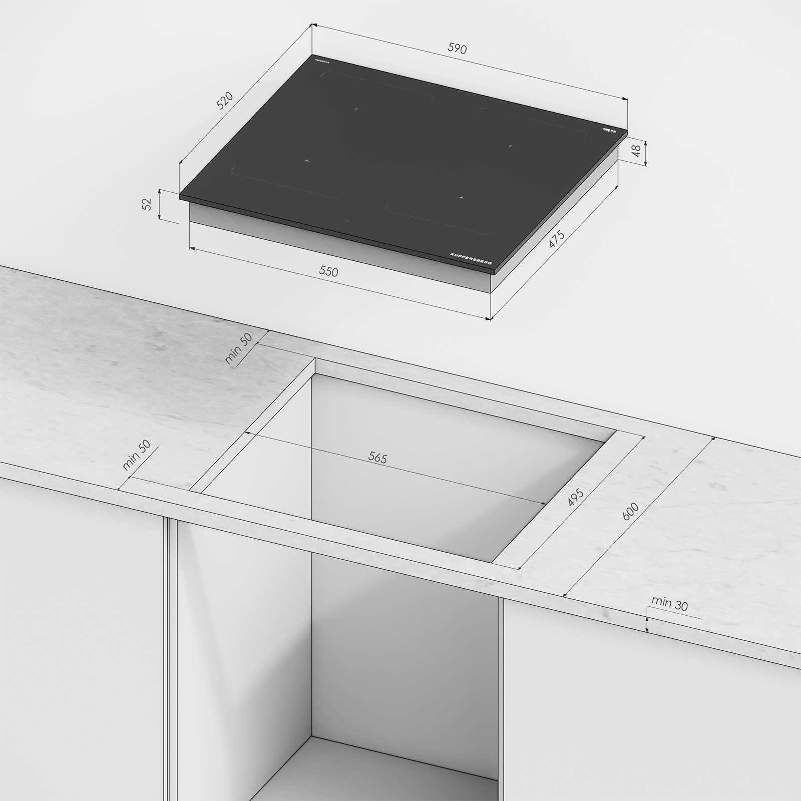 Элегантный дизайн без рамки, обеспечивающий стильный внешний вид и удобство встраивания в столешницу