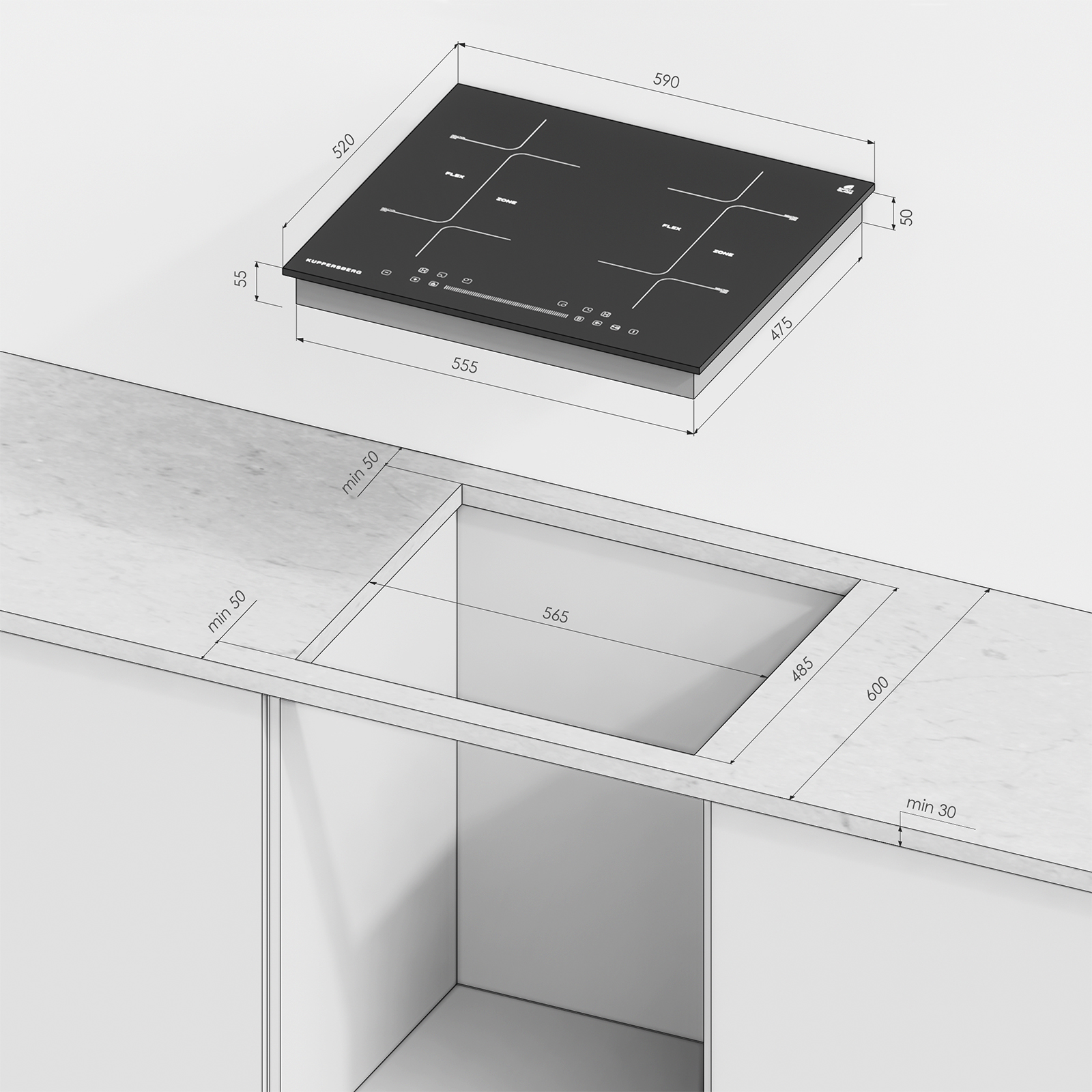 - Размер ниши для встраивания (ШхГ), мм 560x485
