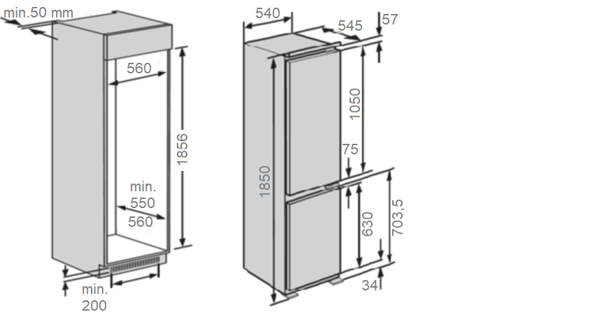 - Размер ниши для встраивания (ШхВхГ), мм 560х1856х560