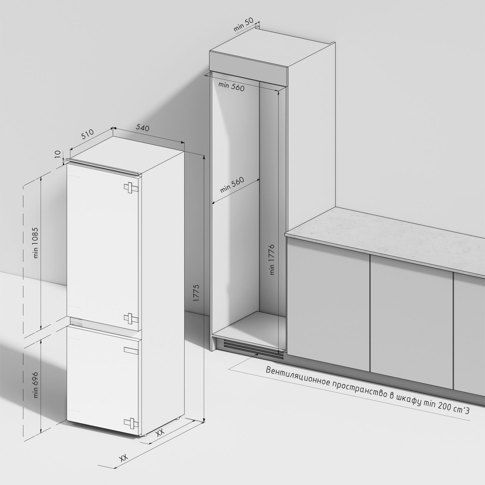 - Размер ниши для встраивания (ШхВхГ), мм 560х1785(+10)х560(+10)